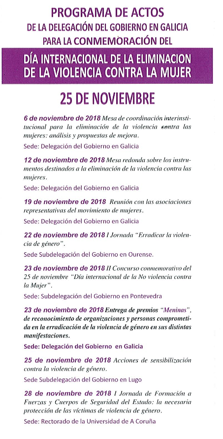 DÍA INTERNACIONAL DA ELIMINACIÓN DA VIOLENCIA CONTRA A MULLER #25N by petin petin | Nov 20, 2018 | Noticias | 0 comments DESCARGUE O TRÍPTICO: DÍA INTERNACIONAL DA ELIMINACIÓN DA VIOLENCIA CONTRA A MULLER